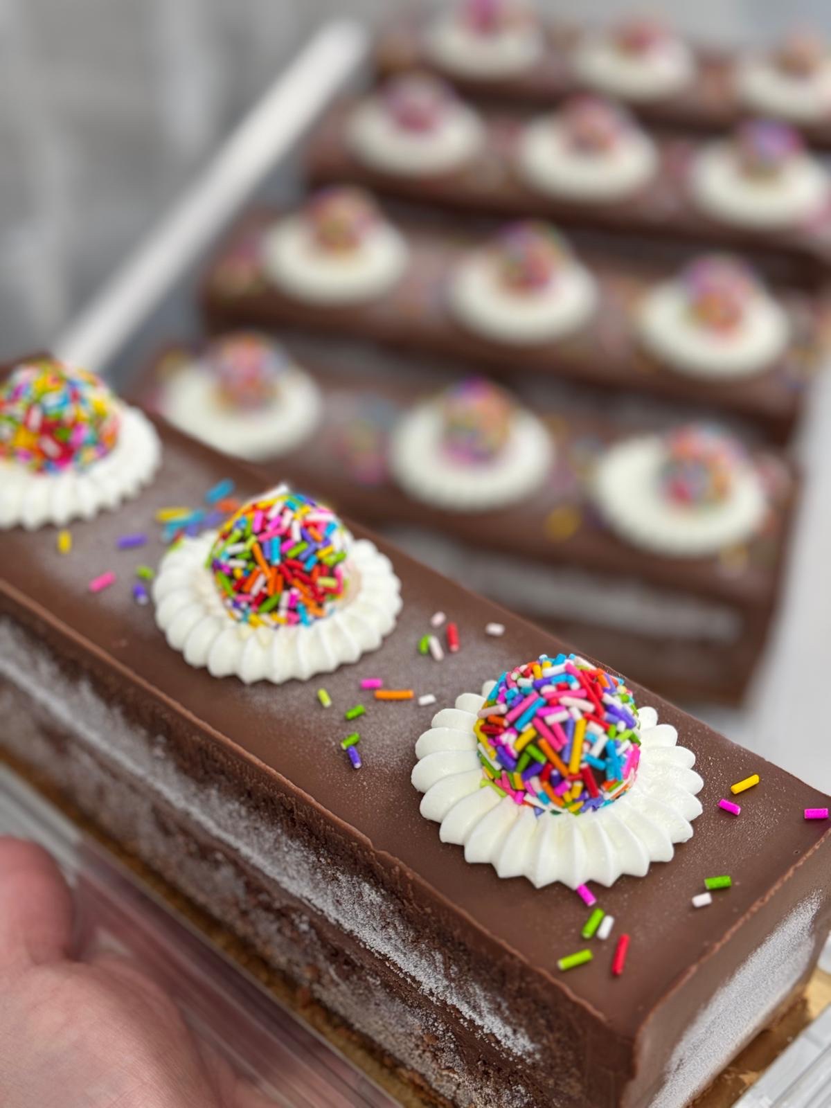 שכבות של עוגת שוקולד נימוחה וגנאש שוקולד חלב עשיר
